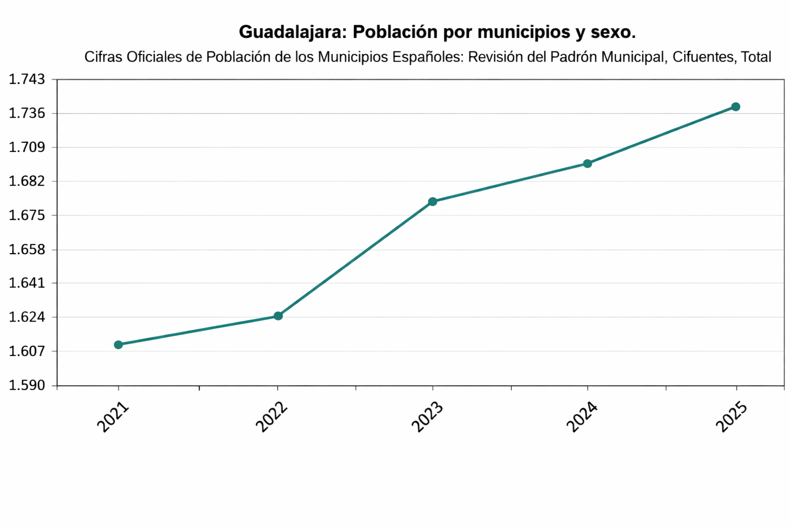 Este balance demográfico supone un incremento de 120 residentes desde 2021, lo que se traduce en una subida relativa del 7,5% en apenas cuatro años. Durante el último periodo anual analizado, la localidad sumó 30 nuevos vecinos a su padrón municipal.